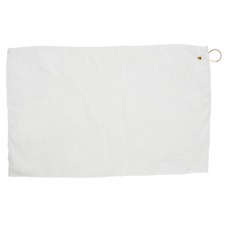 24" x15" full bleed microfiber golf towel. Dye sublimation decoration allows for vivid, high-resolution images that won’t fade with washing. This super soft towel is a money generating accessory because it is large enough to display multiple messages and brands—prints from edge to edge in full color with a hook and grommet.