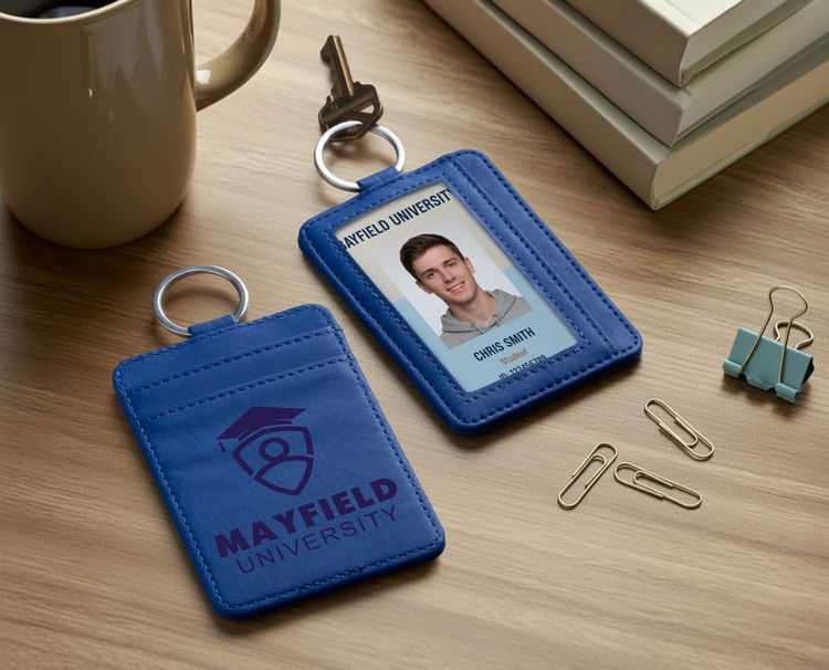 Clean, functional layout with a clear ID window and two rear card slots for everyday carry