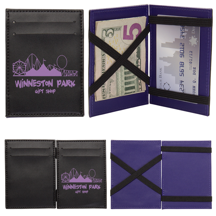 Simply place cards or folded cash in the center of the wallet, close it, then open it from the other side. Voila! Your belongings are safe and secure behind the elastic straps.