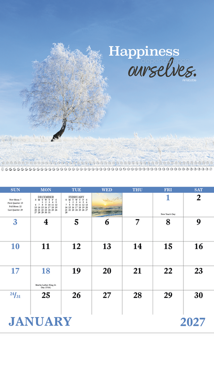 Embrace life’s simple pleasures with this 13-month calendar filled with uplifting quotes and beautiful photography. Additional decoration charges may apply.