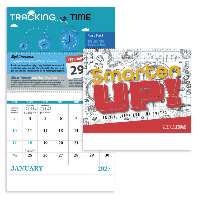 Smarten up all year long with this 13-month calendar packed with fascinating facts and bite-sized knowledge for everyone. Additional decoration charges may apply.