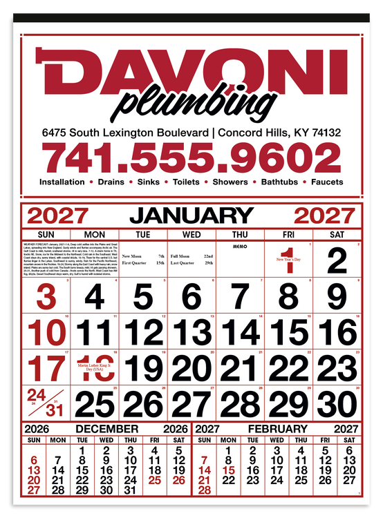 Skinner & Kennedy Contractor's 12-Sheet Calendar