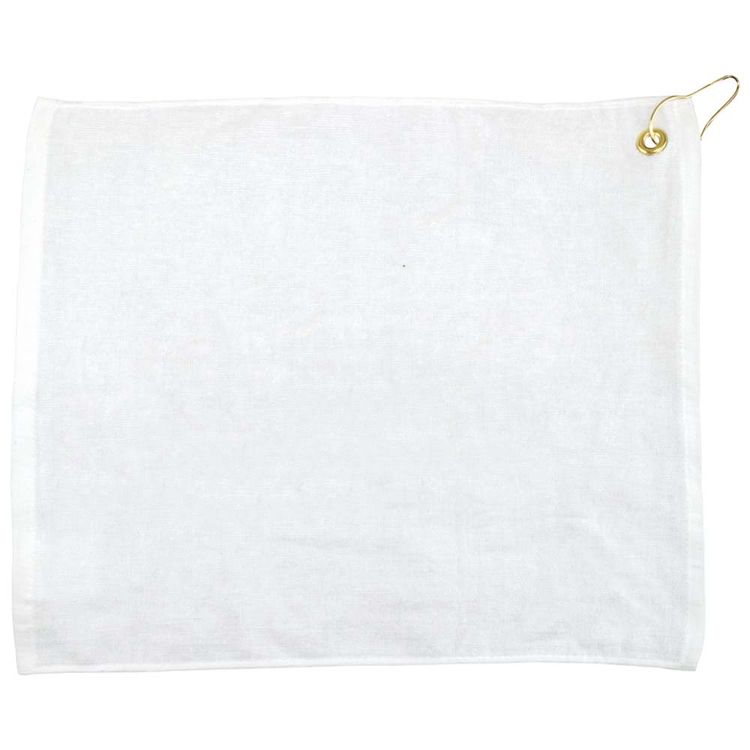 Hemmed 15"x 18", 1.3#/dz terry towel with hook and grommet.